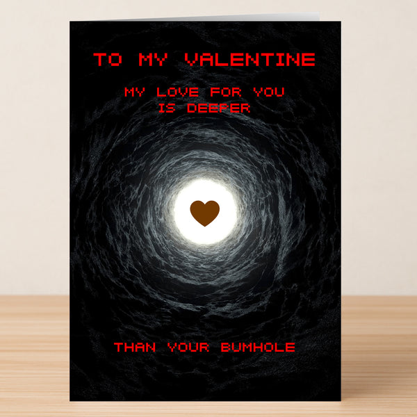 Celebrate love with our Deeper Funny Valentine's Card! This humorous greeting card is perfect for expressing your love and making your partner laugh. With its witty wordplay and playful tone, it's a perfect way to show your quirky and fun side. (No cheesy cliches here!)