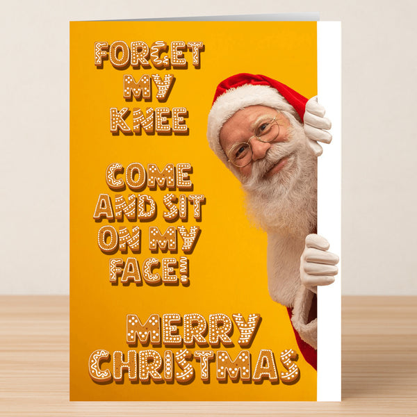 This Forget The Knee Rude Christmas Card is the perfect way to lighten up the holidays. Make a statement and surprise your family and friends with this funny card! Ideal for your favorite grinch.