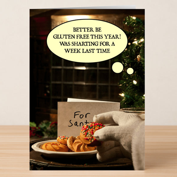 Send a special holiday greeting to a gluten-free friend or family member with this humorous Gluten Free Funny Christmas Card. The card is sure to bring a smile and make someone's day. Perfect for anyone who loves to laugh and celebrates the season without gluten.