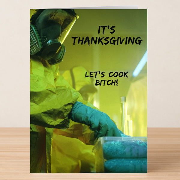 "Unleash your inner rebel this Thanksgiving with our Let's Cook Rude Thanksgiving Card. Perfect for those who like to shake things up, this greeting card features bold and unapologetic language that will have your friends and family laughing. Break tradition and make a statement with our unique and humorous card."