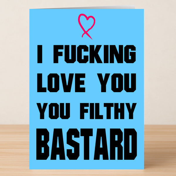 "Send some love with a twist with our Filthy Bastard Rude Greeting Card. Perfect for those with a sense of humor, this valentines greeting card is sure to make your loved one laugh (or possibly cringe). Show them you care in your own unique, quirky way."
