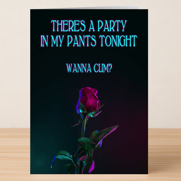 "Show some love (or the lack thereof) with our Party Pants Rude Greeting Card. Perfect for anyone with a cheeky sense of humor, this card features a hilarious and irreverent message that will make your valentine laugh out loud. Let your personality shine through and give a card they won't forget!"