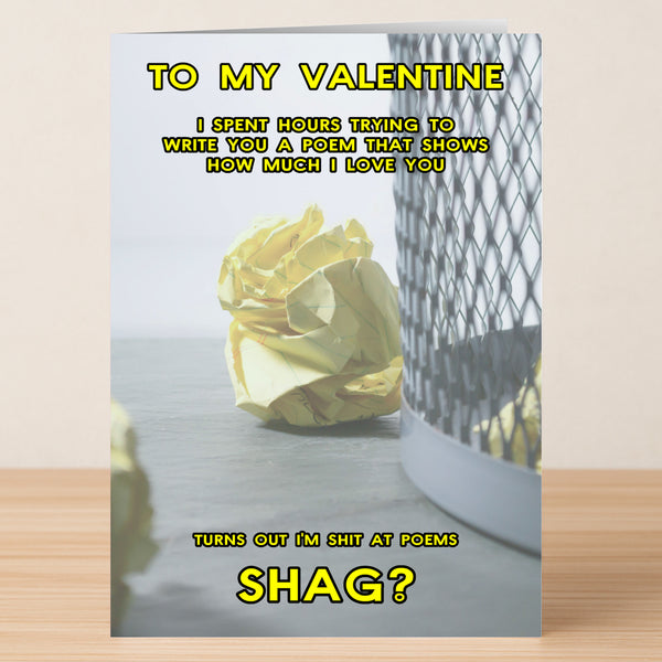 Give a burst of laughter with our Poem Funny Valentine's Card! This greeting card is the perfect way to spread some love and humor on this special day. With a cleverly written poem, it's sure to make your significant other (or secret crush) chuckle. Don't miss out on this unique and playful card!