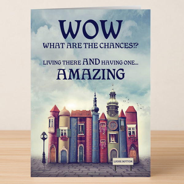 This humorous greeting card is perfect for adding a touch of entertainment to your card-giving. Made with a loose bottom design, it will bring a smile to the recipient's face. Great for all occasions, this card adds a fun and unique element to any event.