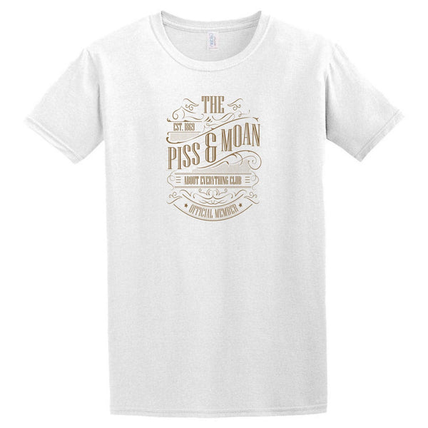 Unleash your inner rebel with our Piss & Moan T-Shirt. This rude t-shirt is perfect for those who don't take themselves too seriously. Make a statement and have a laugh while confidently expressing your rebellious side. (Warning: may cause offended looks and uncontrollable snickers.)
